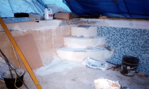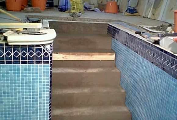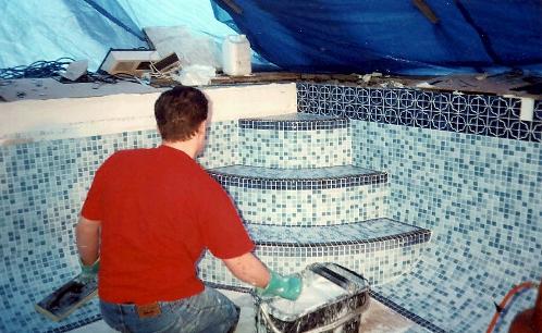 Matthew grouting the steps prior to us covering them up to protect them against anyone getting into the pool with muddy boots on.