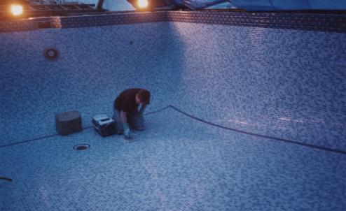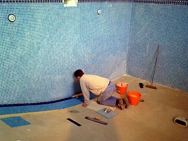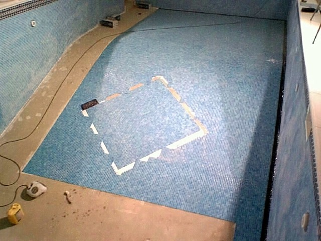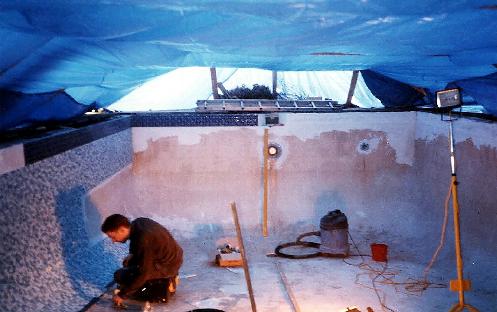 The last knockings and the final bit of grouting to the right hand side of the deep end.