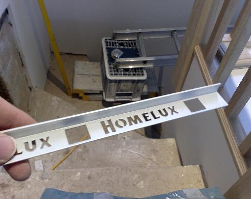 A chrome L shaped trim has been chosen to finish the nosing of the tread.