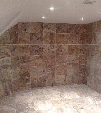 This Bathroom was fully tiled in Silver Travertine Marble, the variation in the stone was stunning and beautiful as i'm sure you'll agree.