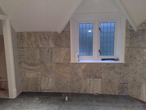 The main problem here was the rectified marble and the not so flat walls, a lot of adhesive was used to give me the chance to not only get the walls solid but perfectly flat.