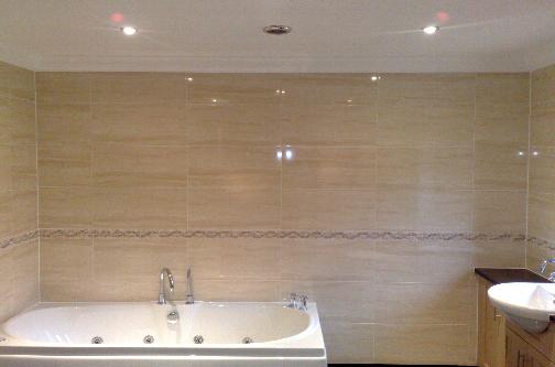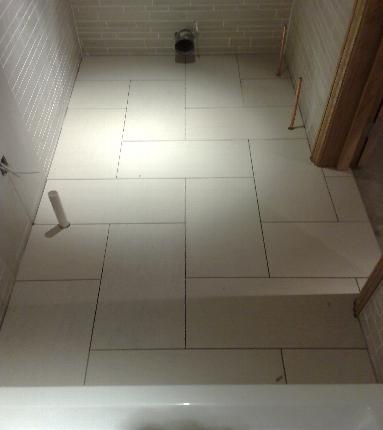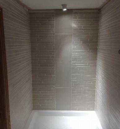 This bathroom was a very complicated domestic installation in the barn conversion of a very dear customer. To start with, the base tiles are very heavy, rectified(square edged) 40cm X 40cm gloss polished Porcelain.