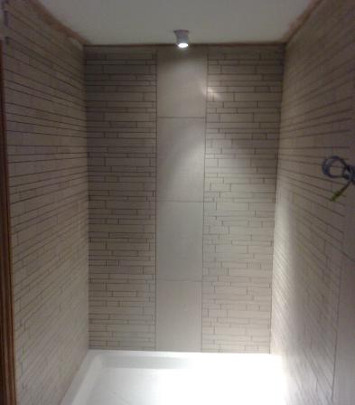 This small ensuite showeroom unbelievably had over 700 cut tiles, with 50 tiles from floor to ceiling