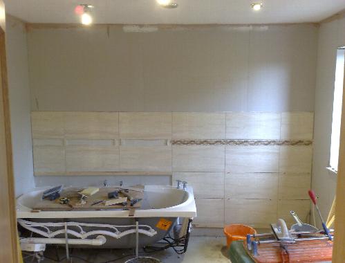 Here you can see the plumbing void plinth solution that the bath stands on. There was no room for the pipes between the joists.