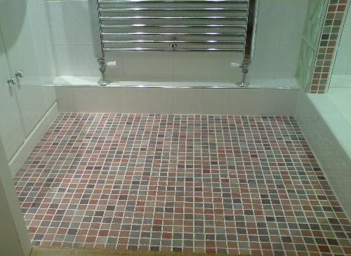 One thing worth noting is that mosaic, even gloss mosaic, is a very good nonslip surface in small areas