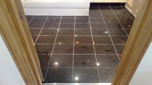 The floor of this bathroom was fixed in Gulfstone, it has small pieces of mirror in it so it glints and glistens as you walk across it.